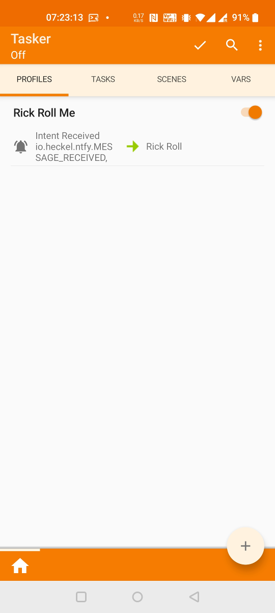 To send messages from other apps (such as MacroDroid and Tasker), you can broadcast an intent with the io.heckel.ntfy.SEND_MESSAGE action. The ntfy Android app will forward the intent as a HTTP POST request to publish a message. This is primarily useful for apps that do not support HTTP POST/PUT (like MacroDroid). In Tasker, you can simply use the "HTTP Request" action, which is a little easier and also works if ntfy is not installed.